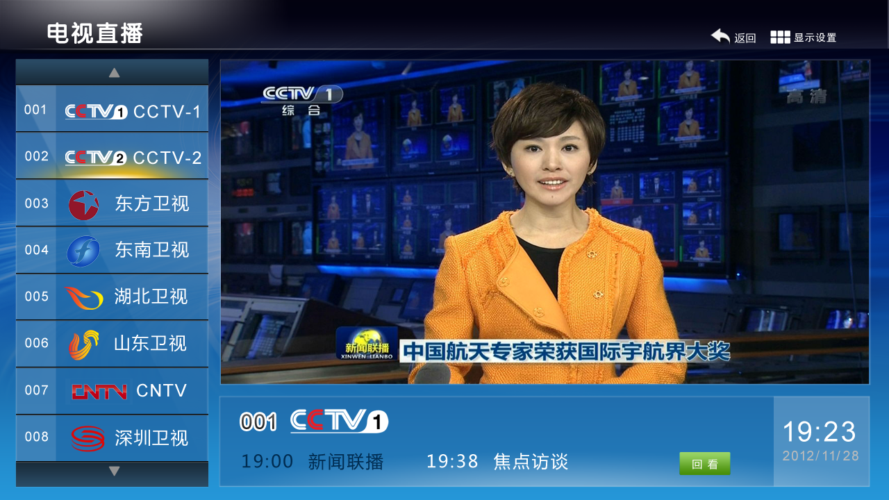 當(dāng)選擇光標(biāo)移動到相應(yīng)的電視節(jié)目直播列表上時(shí),電視終端右邊屏幕中會自提彈出本頻道正在播放的直播節(jié)目,病人會提前觀看到要觀看的節(jié)目。