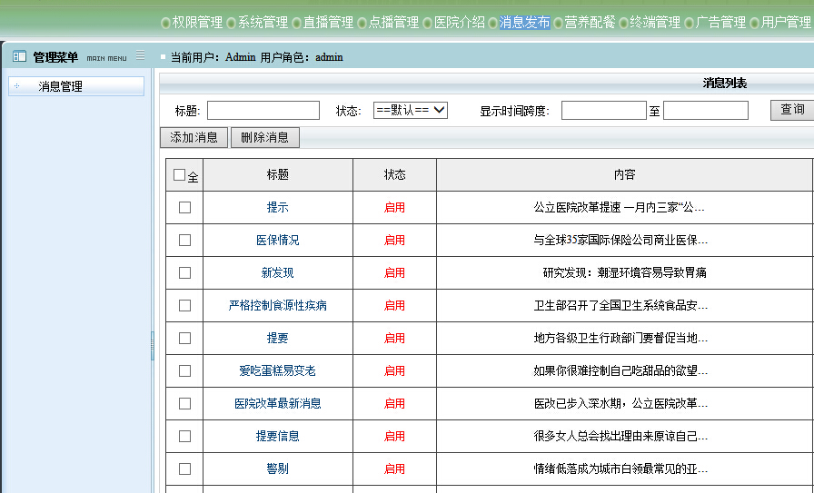 管理病房用戶的帳號,這些帳號將用于記錄操作、提供查詢、定向公告、播放統(tǒng)計(jì)等相關(guān)功能。