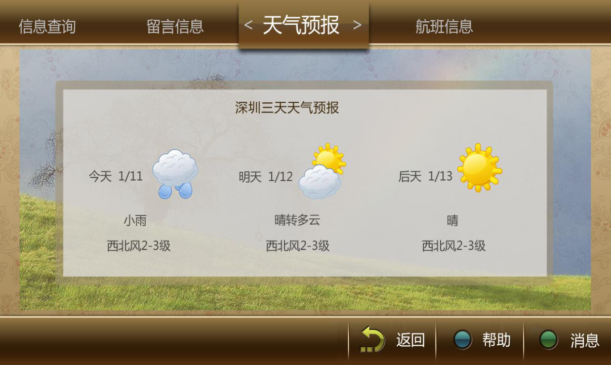 簡單大方的開機(jī)界面,方便病房入住客戶操作,也可根據(jù)用戶需要定制。